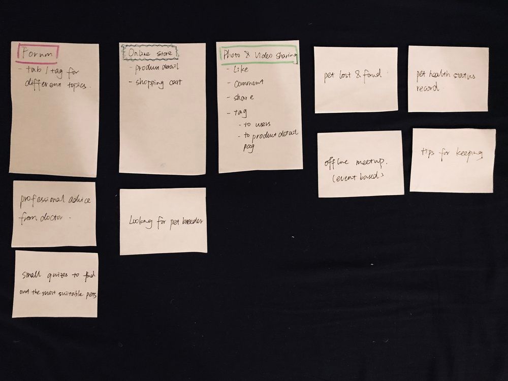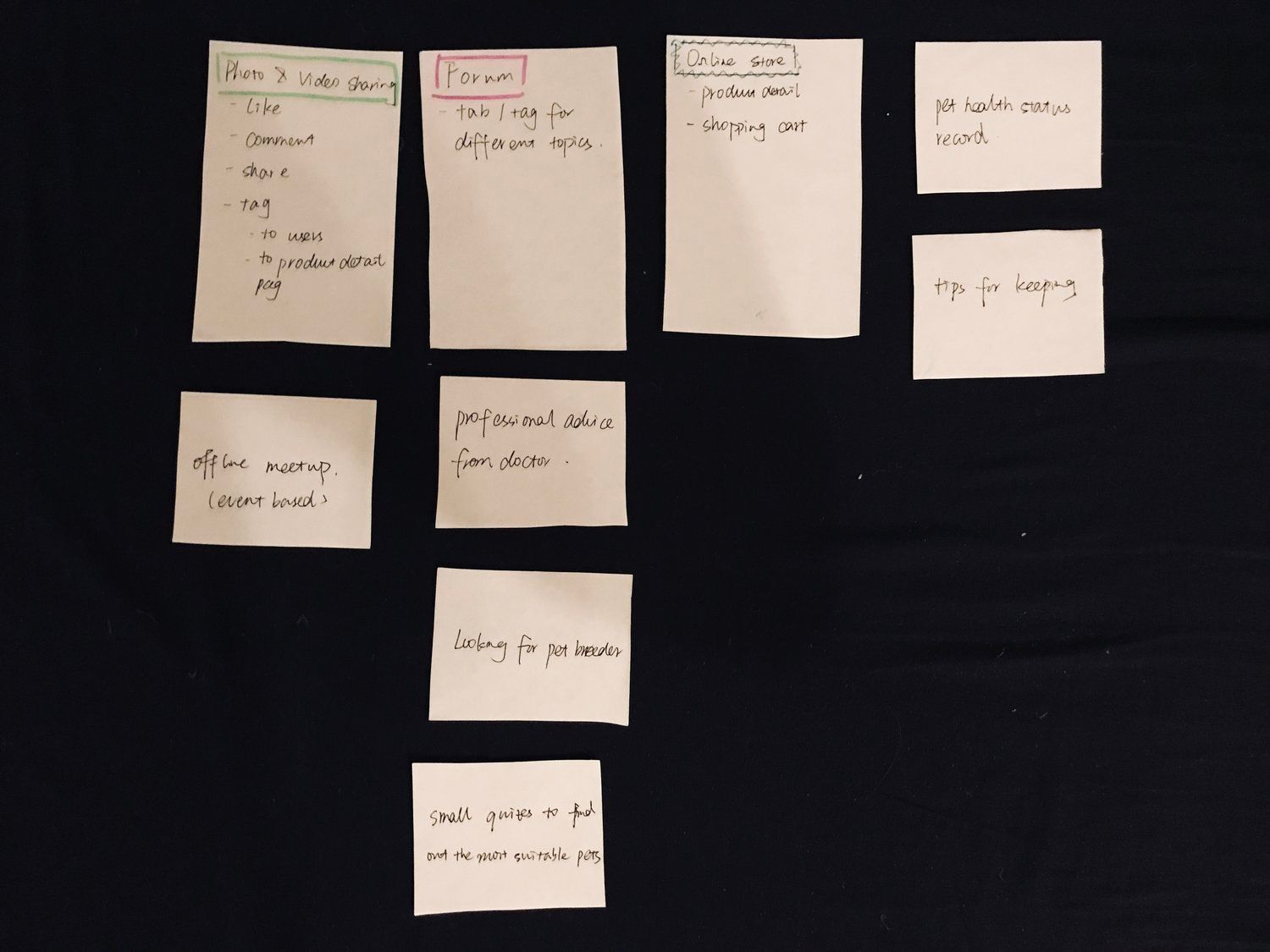 In the end, the main functions I decided to do are: pet forum, pet photo & video sharing, pet online store. Some basic functions like message and user profile management will also be included in the main tabs.